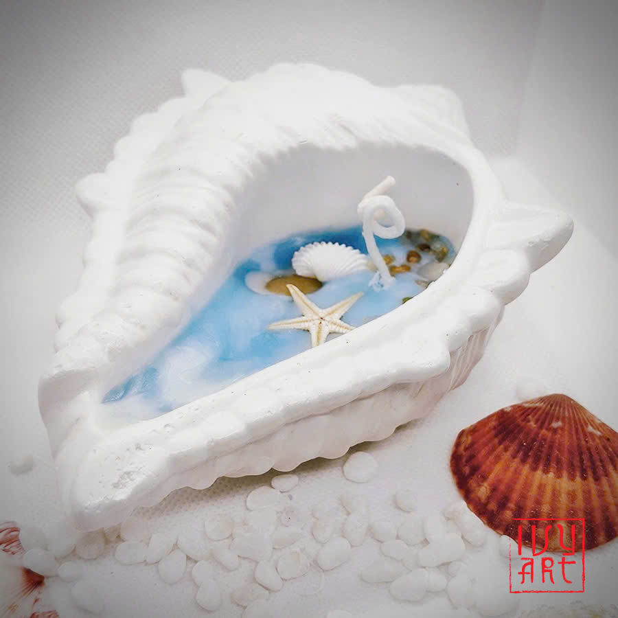 Hãy để các giác quan của bạn trôi dạt vào một khung cảnh biển lãng mạn với Lover’s Lagoon – nến thơm thủ công hình vỏ sò đến từ Ivy Art. Được tạo hình như một chiếc vỏ sò tinh xảo và chứa đầy sáp màu xanh biển, cây nến này gợi lên vẻ quyến rũ của một vịnh biển bí ẩn. Được trang trí bằng sao biển mini, vỏ sò và sỏi nhỏ, đây là một tác phẩm vừa thị giác vừa khứu giác, tôn vinh sự tĩnh lặng và thơ mộng của đại dương.